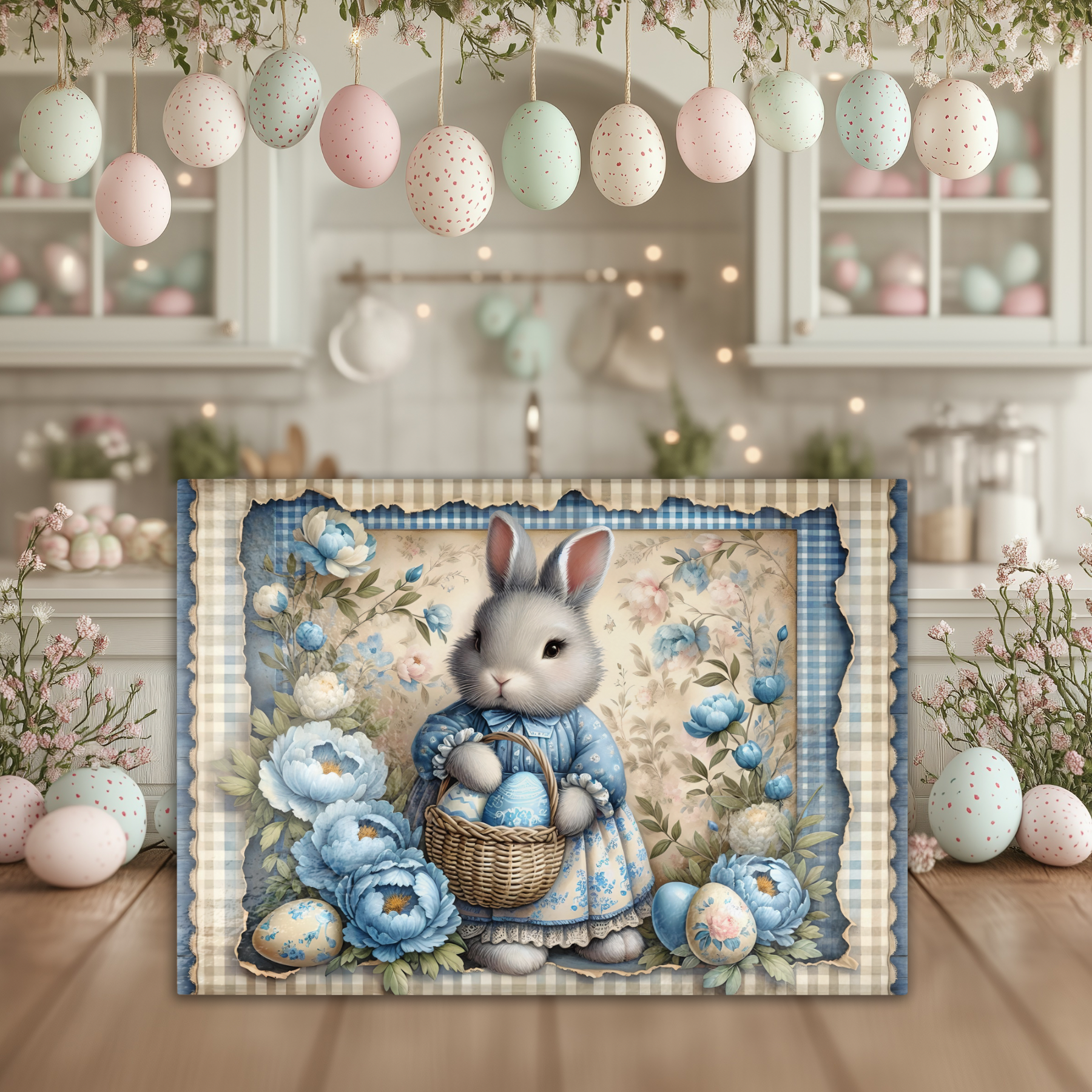 Enchanting Blue Floral Bunny Tempered Glass Cutting Board, Easter Decor, Serving Tray, Gift Idea, 2 Sizes